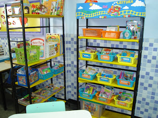 Onde as crianças encontrarão variados materiais de leitura: livros, revistas, gibis, jornais, livros de receitas, atlas, dicionários, etc.