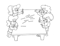 As mesas podem ser usadas como "cantinhos" (cantos) para: jogos pedagógicos, modelagem, colagem, desenho e brinquedos que necessitem do apoio da mesa.