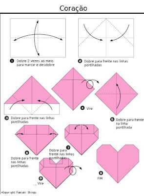 Como Criar um Origami de Coração,Diagrama, Como Fazer Origami, Dobradura Coração
